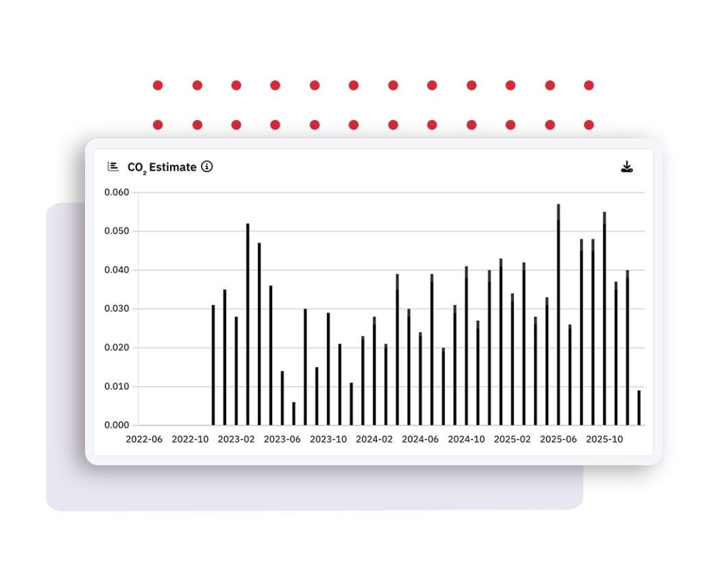 The CO₂ Estimate chart shows an experimental calculation of the fleet’s estimated operational carbon emissions over time. It combines energy and water consumption with the national electricity mix and displays aggregated monthly totals in metric or short tons. The calculation covers only emissions from robot operation and excludes manufacturing and transport.